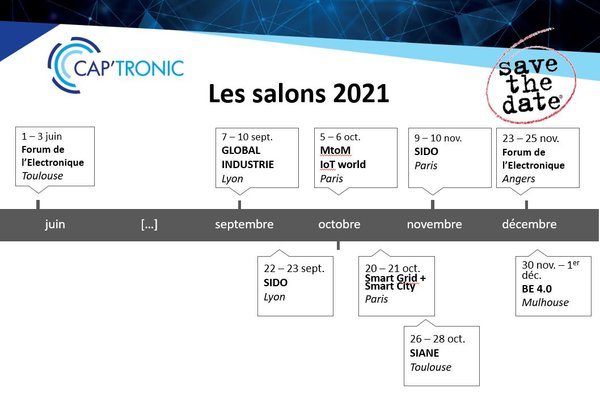 Pour plus de renseignements sur les salons 2021, contactez l’ingénieur-conseil de votre Région ou le service communication CAP’TRONIC.