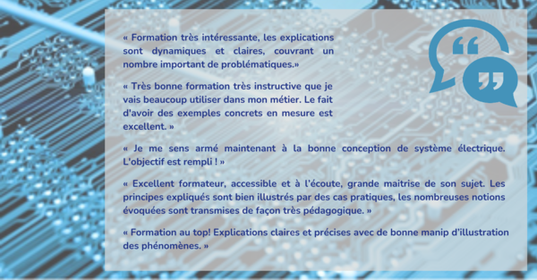 Cette formation intensive s’adresse à tous les ingénieurs et techniciens qui conçoivent, interconnectent ou intègrent des cartes ou modules électroniques et souhaitent maîtriser les perturbations électromagnétiques. En 2,5 jours, découvrez des méthodes concrètes pour concevoir des systèmes fiables, optimiser vos PCB et appliquer les meilleures pratiques de blindage, filtrage, câblage et mise à la masse.