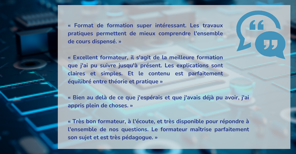 Moyens pédagogiques : Support de cours - Travaux pratiques - Assistance pédagogique assurée par le formateur 1 mois après la formation.