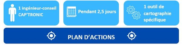 Cette démarche débute par une série d’interviews autour de vos produits en utilisant un outil spécifique CAP’TRONIC, développé en s’appuyant sur l’expérience de ses équipes. L’analyse porte à la fois sur les aspects : électronique, logiciel, mécanique, plasturgie... mais aussi sur le contexte de l’industrialisation.