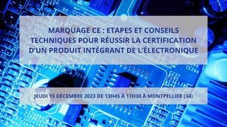 SEMINAIRE : Marquage CE : Etapes et conseils techniques pour réussir la certification d’un produit intégrant de l’électronique le 15 décembre à Montpellier